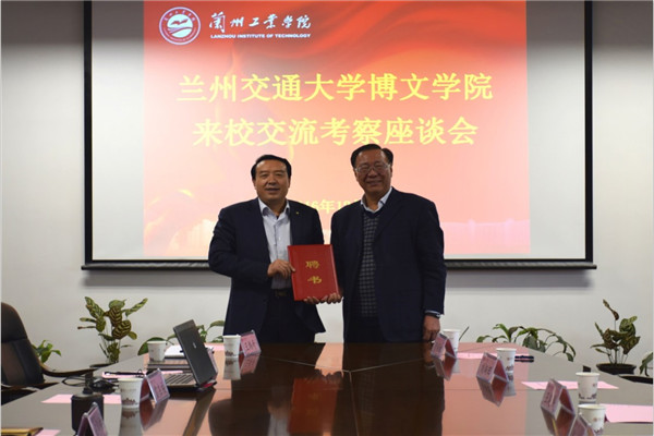 陈彪院长代表学院聘请兰州工业学院俞子泓书记、王华栋校长、魏军副校长为我院发展咨询委员会咨询专家,并在现场向他们颁发了聘书。