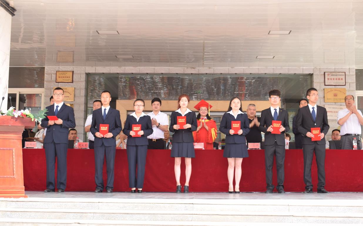 在欢快的音乐声中,院领导为毕业生代表颁发了毕业证书、 学位证书、优秀毕业生荣誉证书,并为考取硕士研究生的同学颁发了奖金。