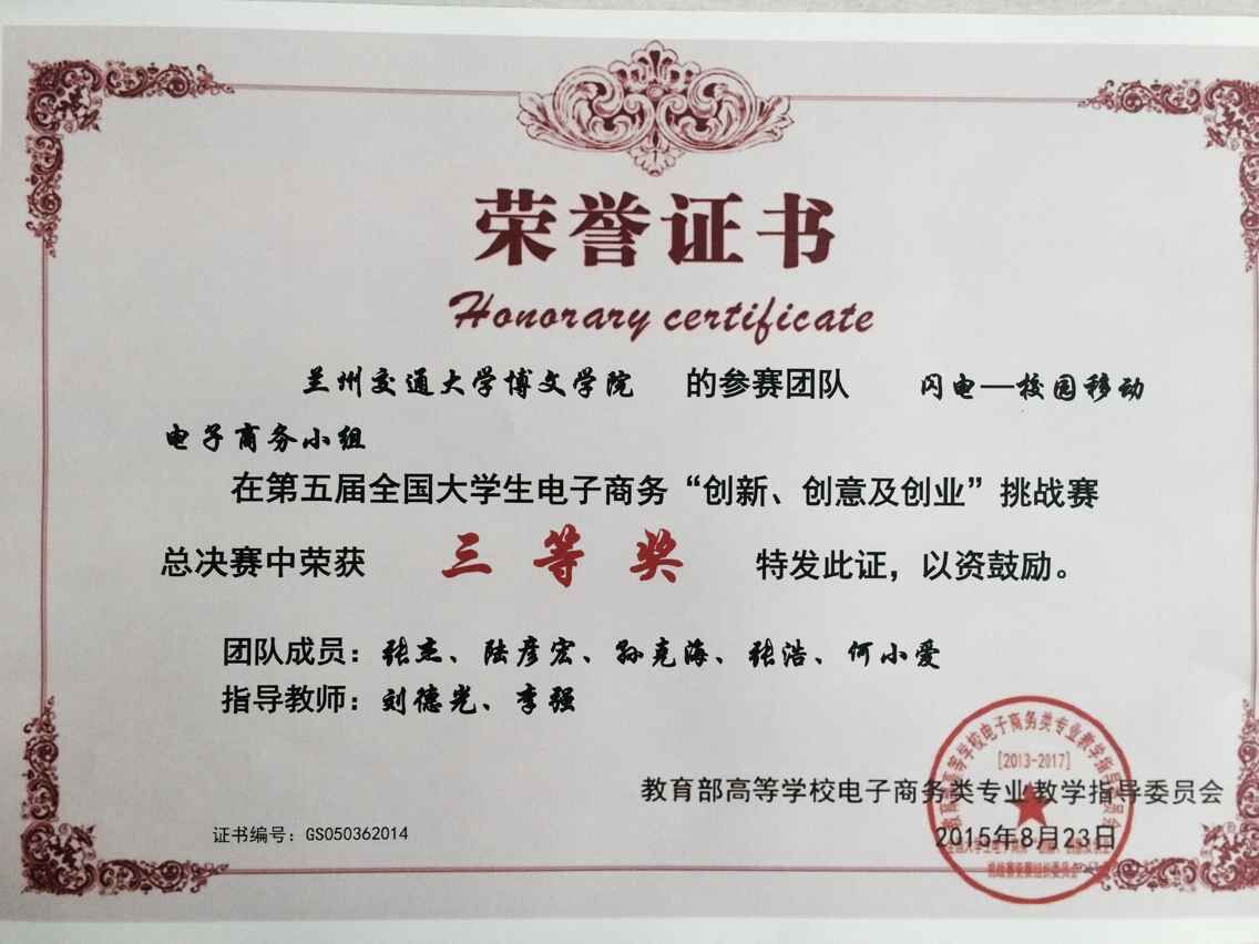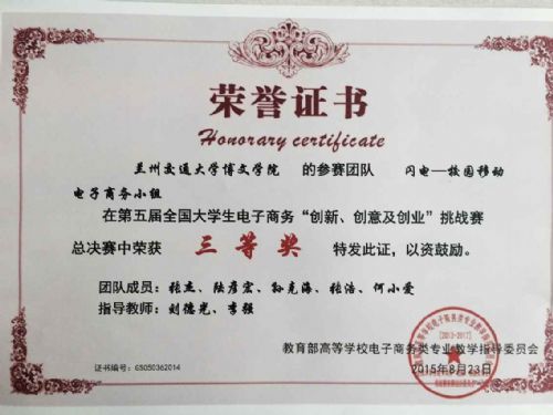 热烈祝贺我院参赛团队荣获第五届全国大学生电子商务“创新、创意及创业”挑战赛总决赛三等奖