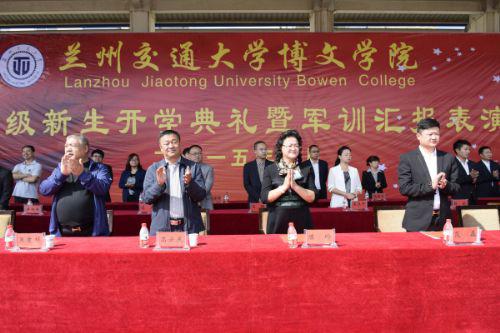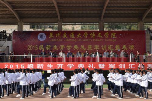 秋高气爽,丹桂飘香。9月18日上午,兰州交通大学博文学院2015级新生开学典礼暨军训汇报表演在体育场隆重举行。兰州交通大学高云庆副校长,党委校长办公室钱勇生主任,教务处马镭副处长,学生处王亚平副处长,财务处高虎副处长;甘肃省军区教导大队驻兰州交通大学博文学院军训团刘继军团长;学院陈玲院长,王吉祥党委副书记、常务副院长,范磊执行院长,左闯副院长,党发育副院长、王西林副院长、刘彦凯副院长及各处(室)、系(部)的负责人出席典礼并在主席台就坐。典礼由学院王西林副院长主持。