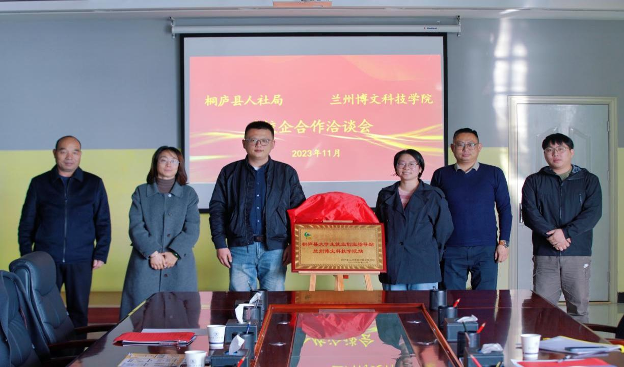 11月8日下午,桐庐县人社局与我校政校企合作洽谈会在北校区创客空间会议室举行。桐庐县人才就业处副主任邹旭霞,杭州科德磁业资源部部长李晨枫,我校招生就业处处长赵存良,机电工程学院院长苗莉,经济与信息管理学院副院长刘炳田,电信工程学院副院长马白出席参加洽谈会。洽谈会上,赵存良首先对莅临学校的领导和企业代表表示热烈欢迎,并就我校办学情况进行了介绍,他表示近年来兰州博文科技学院办学水平逐步提高,我校始终坚持“以服务为宗旨,以就业为导向”的方针,并希望我校政校企合作能更进一步。随后,邹旭霞介绍了桐庐县招才引才政策及校企合作情况,李晨枫对本次双选会各企业岗位需求情况进行了详细介绍。最后,桐庐人社局授牌我校大学生就业创业指导站。