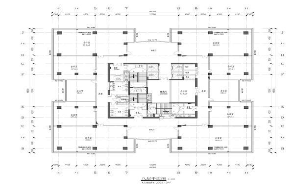 一层:北侧大厅(扩大前室),南侧大厅以及走廊过道;