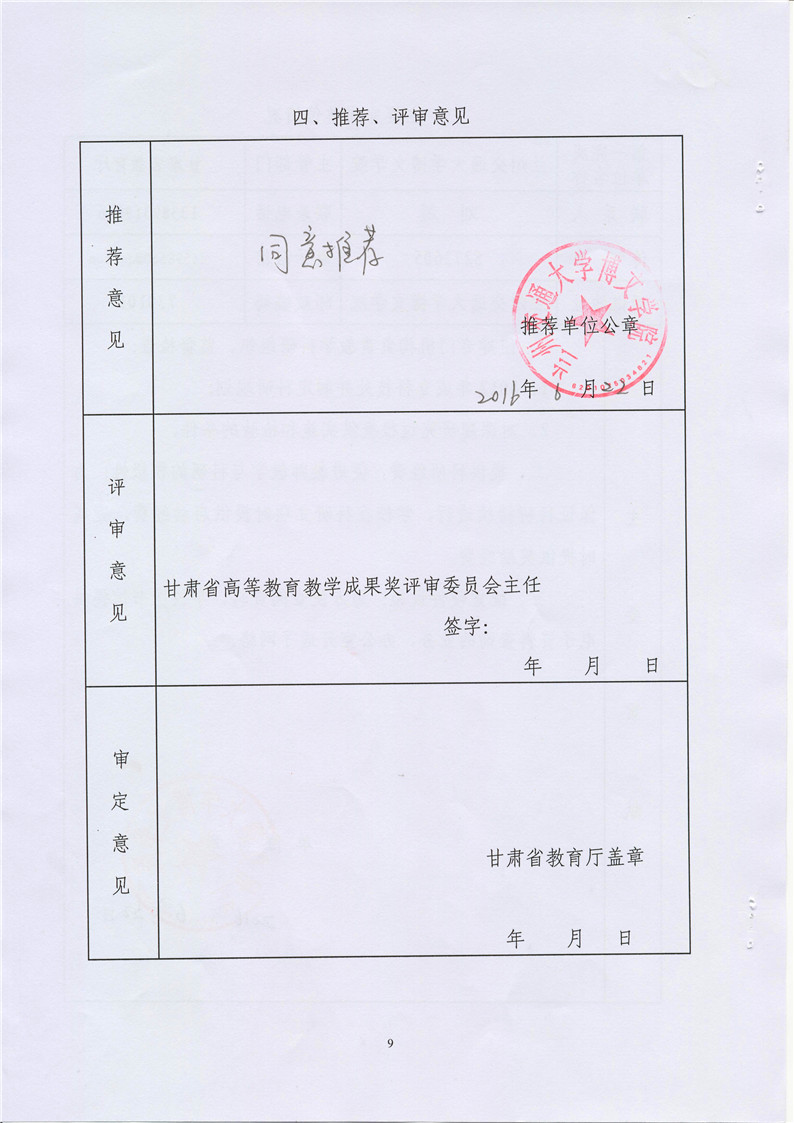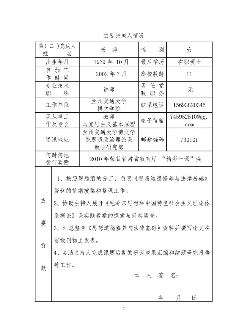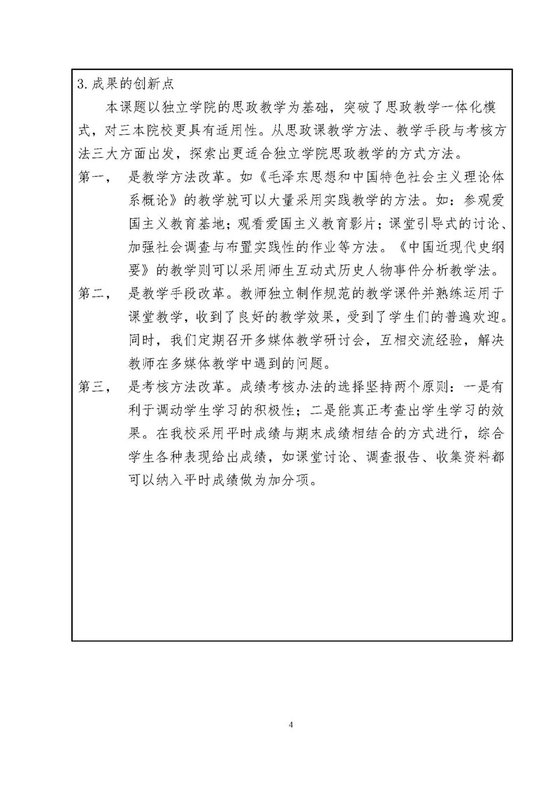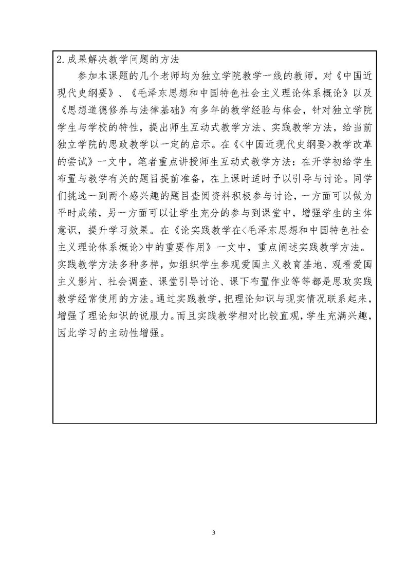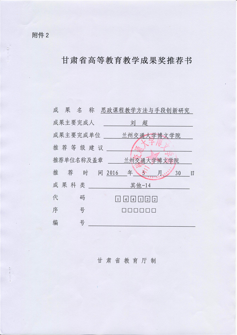 《思政课程教学方法与手段创新研究》成果推荐材料(2016年6月申报)