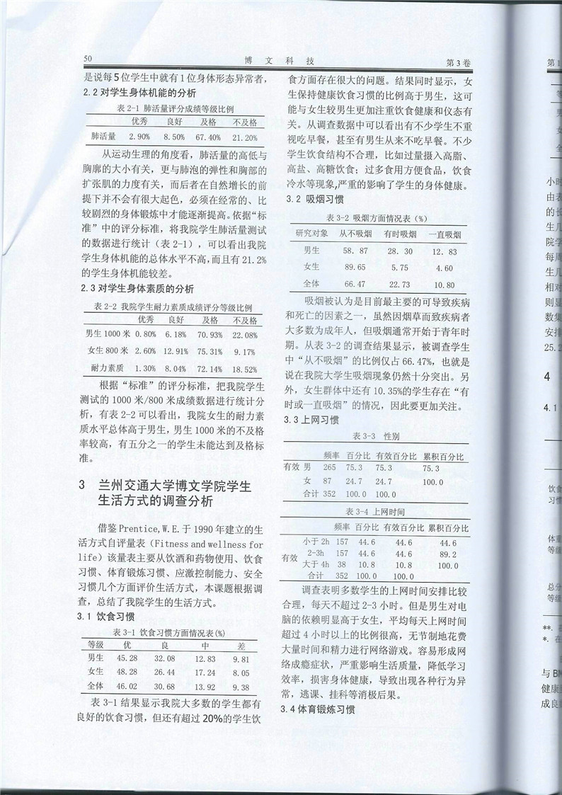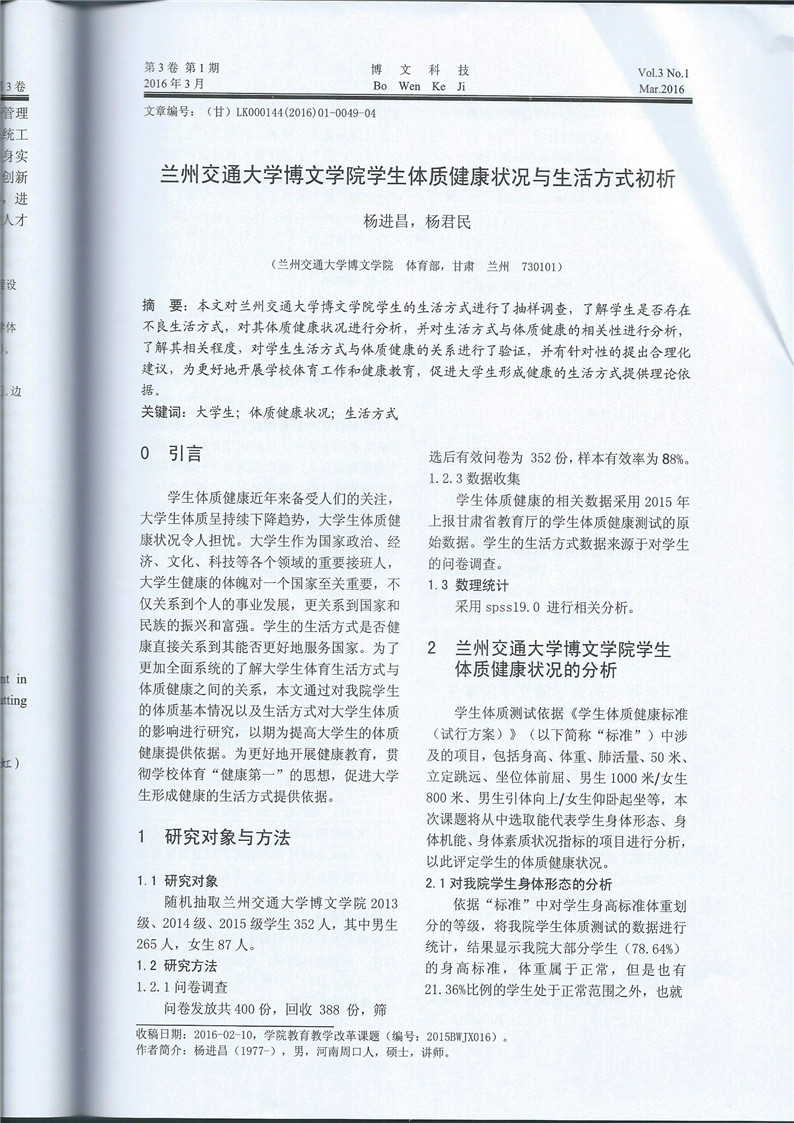 《兰州交通大学博文学院学生体质健康与生活方式的研究》成果展示(2016年6月申报)