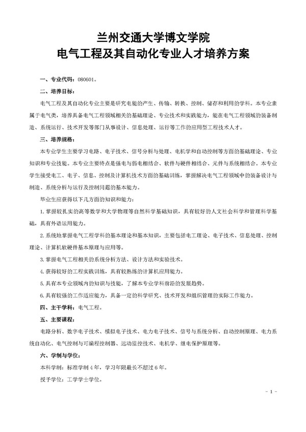 电气工程及其自动化专业人才培养方案