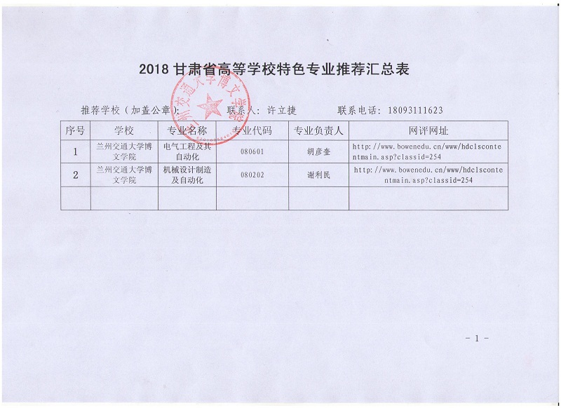2018年甘肃省高等学校特色专业推荐汇总表