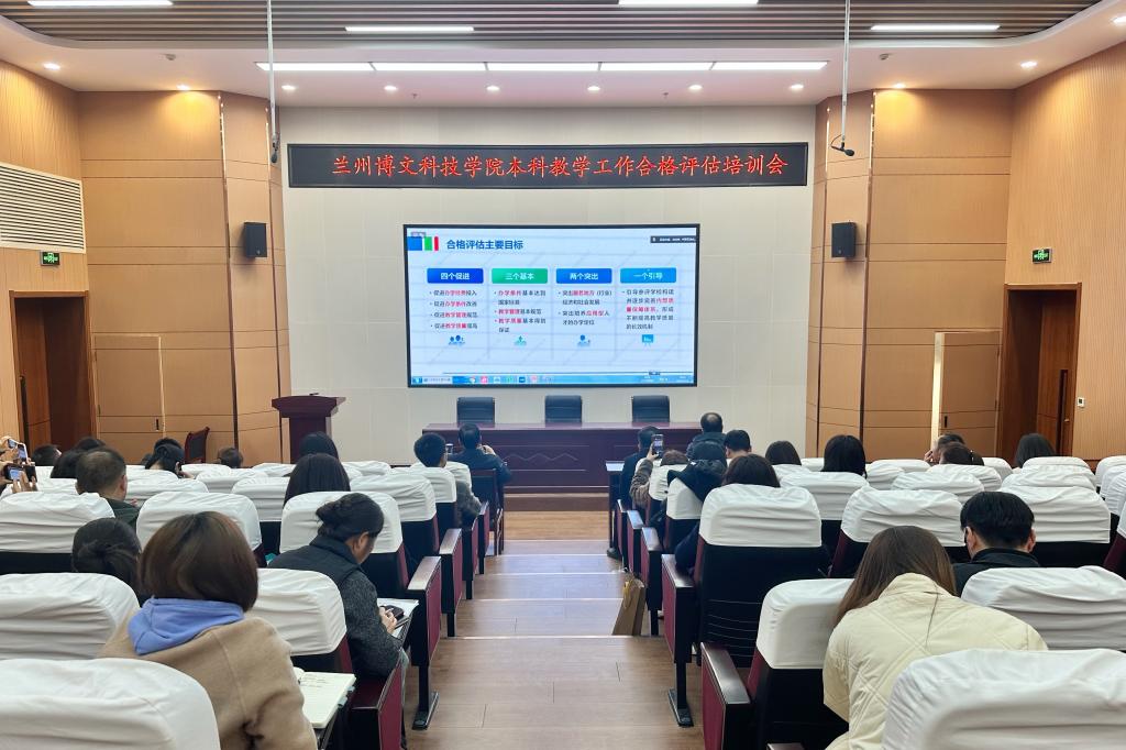 2025年3月21日,为深入贯彻落实党的二十大精神,加快建设高质量教育体系,切实做好2026年本科教学工作合格评估迎评促建工作,兰州博文科技学院教学副校长,各行政部门负责合格评估人员,各二级学院院长、副院长、专业带头人等相关评估人员参加了由教育部教育质量评估中心组织的本科教学工作合格评估参评高校培训会。