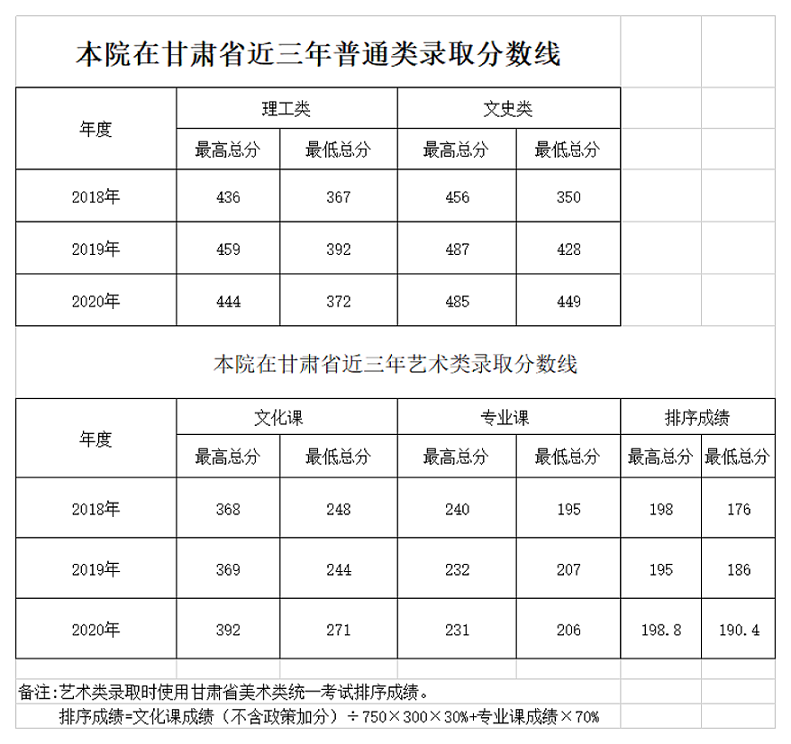 兰州博文科技学院在甘肃省近三年普通类、艺术类录取分数线