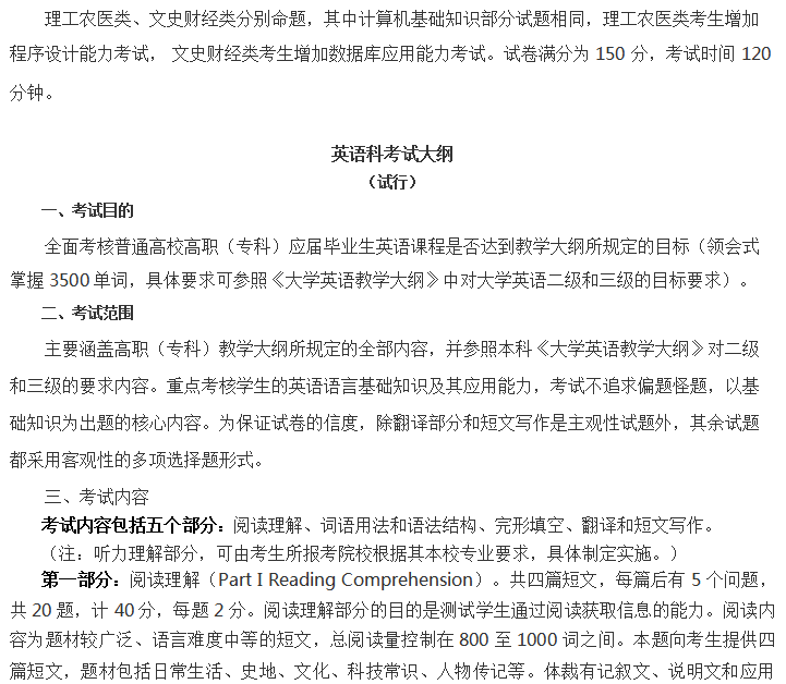 兰州交通大学博文学院2020年专升本基础课考试大纲