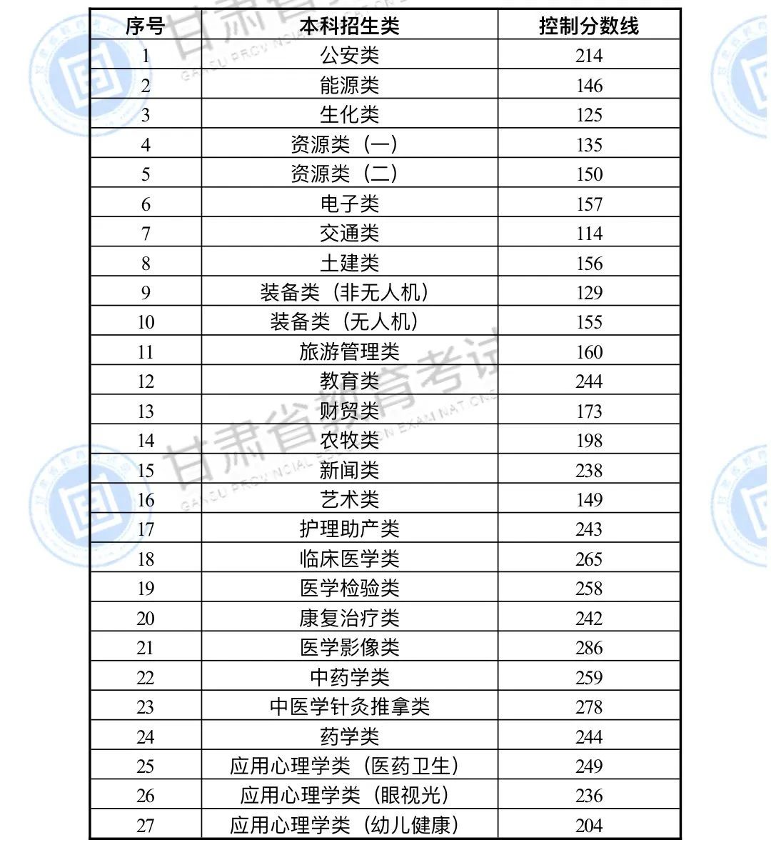 2024年甘肃省普通高校高职(专科)升本科统一考试招生录取控制分数线公告